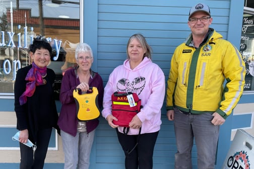 We proudly supported the Nicola Valley Search and Rescue by purchasing a new automated external defibrillator. It's because of your support at the Thrift Shop that we were able to make this donation.